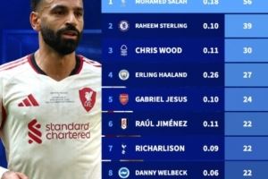 英超现役制胜球球员排行:萨拉赫56球遥遥领先,斯特林39球次之