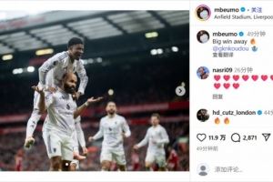 赛后,此役闪击破门的姆贝莫更新社媒庆祝胜利,他写道:关键的客场胜利