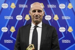 九月联赛三连胜!阿莱格里领取意甲九月最佳教练奖杯